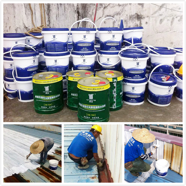 青龍公司中山經(jīng)銷商張總成功承接了這一防水補(bǔ)漏工程。經(jīng)過實(shí)地仔細(xì)檢查,并經(jīng)與客戶詳細(xì)協(xié)商,最后敲定采用青龍公司CQ103丙烯酸酯高級彈性防水涂料和CQ104單組份濕固化純聚氨酯防水涂料的組合補(bǔ)漏方案。青龍CQ103丙烯酸酯防水涂料具有良好的耐老化、延伸性、粘結(jié)性、成膜性及耐高溫性,因此非常適合在鐵皮房屋頂作整體涂刷;而屋頂排水溝則采用CQ104單組份濕固化純聚氨酯防水涂料。