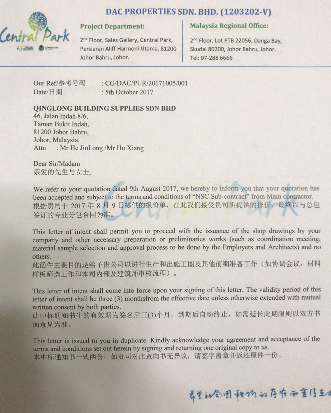青龍防水中標(biāo)碧桂園馬來西亞柔佛中央公園