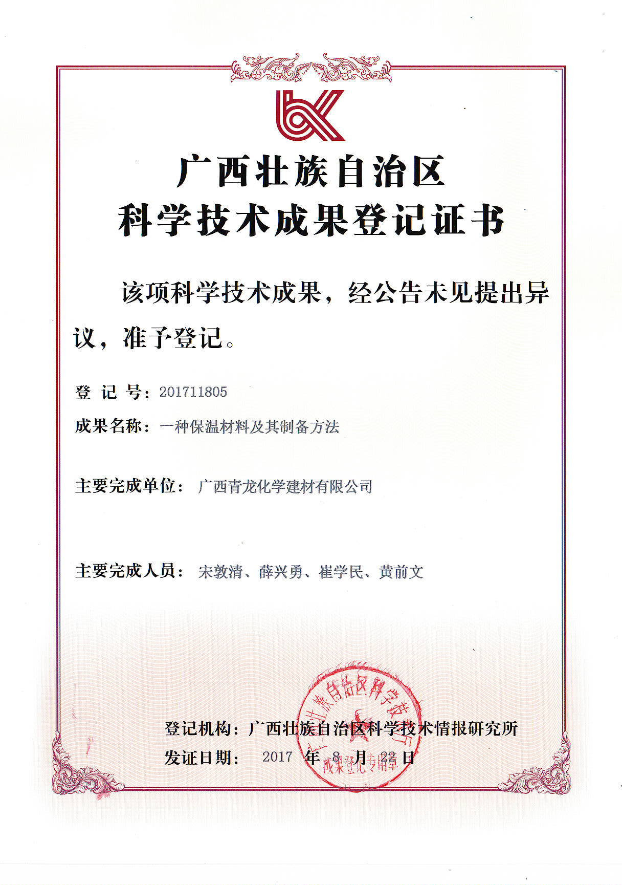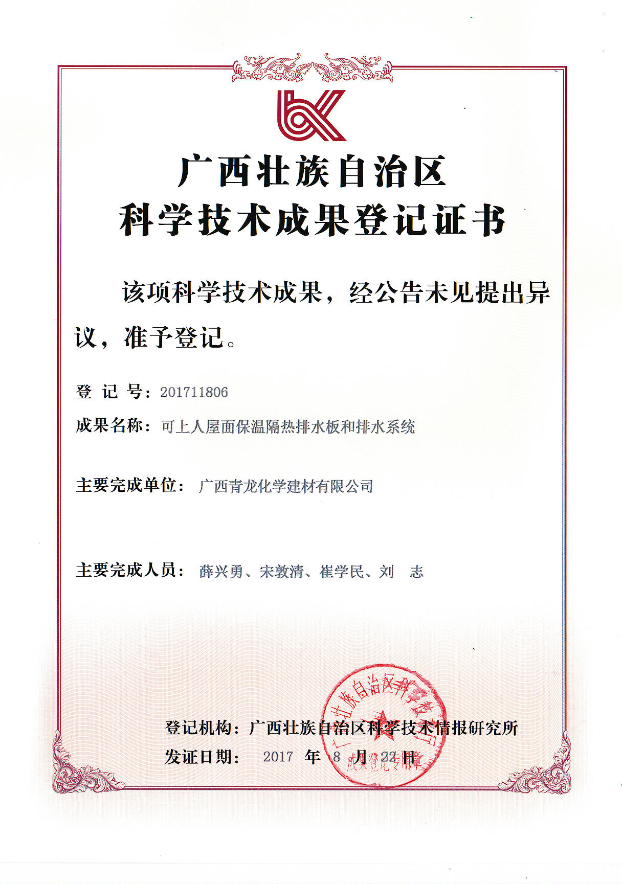 青龍建材七項科技成果,請君過目: