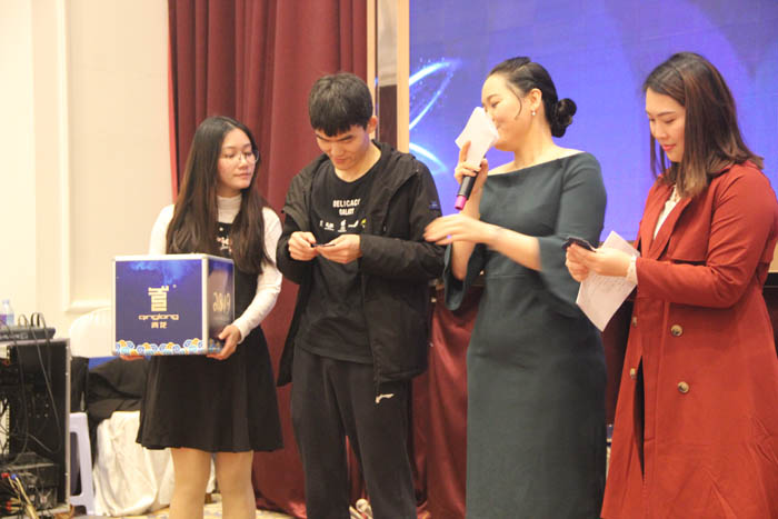 除了精彩的文藝節(jié)目,更讓人充滿(mǎn)期待的當(dāng)然是晚會(huì)標(biāo)配的抽獎(jiǎng)啦!今年公司為大家準(zhǔn)備了微信搖一搖、精美實(shí)物獎(jiǎng)勵(lì)、微信紅包和現(xiàn)金紅包等等多項(xiàng)多種大獎(jiǎng),主持人每一次的報(bào)獎(jiǎng)都讓大家小心臟撲通撲通的跳,充滿(mǎn)希望,中獎(jiǎng)?wù)呦膊蛔詣?!一輪又一輪大?jiǎng)也將年會(huì)推向高潮,大家都非常的興奮,歡快!