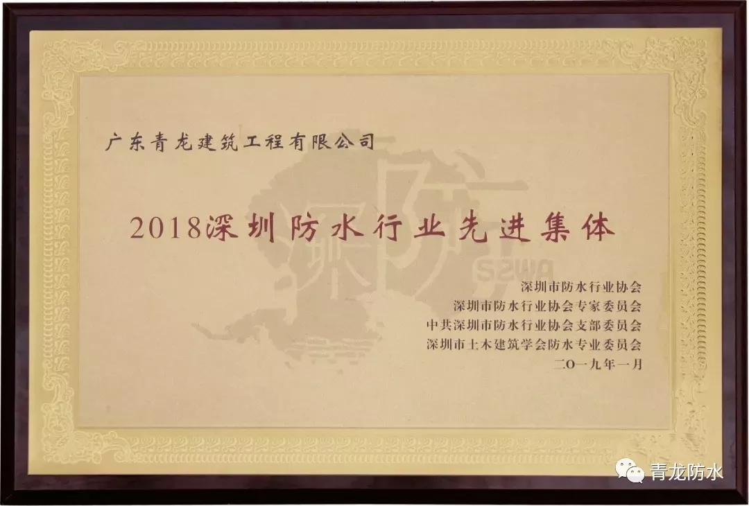 04、2019年1月 | 榮獲"2018年深圳防水行業(yè)先進(jìn)集體獎"