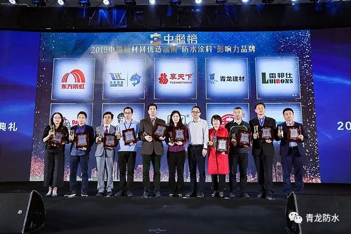 2019年5月9日,以"聚焦精裝,共筑未來"為主題的2019房地產(chǎn)供應(yīng)鏈發(fā)展峰會暨"中楹磅"中國建材網(wǎng)優(yōu)選品牌頒獎典禮在廣州香格里拉酒店隆重舉行,青龍建材應(yīng)邀出席,同時憑借品牌實力和市場影響力成功榮獲防水材料影響力品牌獎,這是對青龍公司長期以來的品牌經(jīng)營和市場拓展的肯定與褒獎。