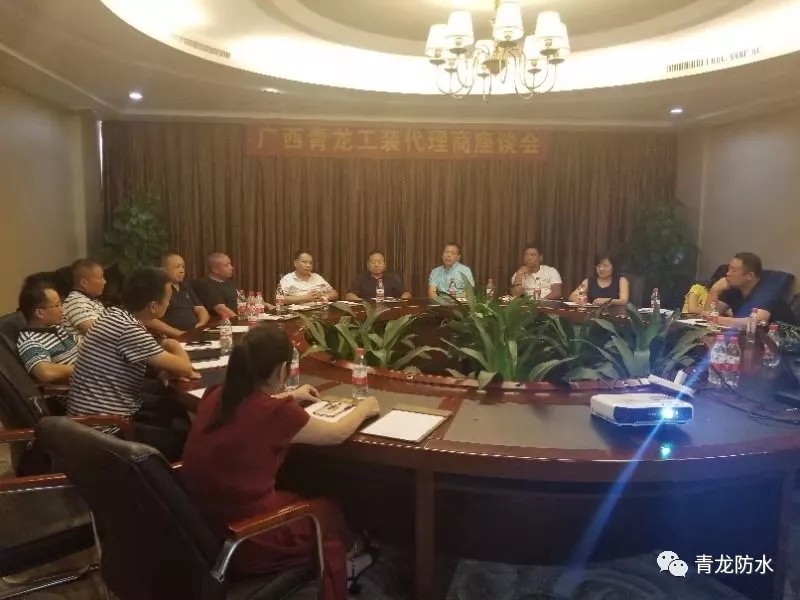 為共謀發(fā)展,攜手共贏,2019年6月22日至23日,青龍防水廣西代理商座談會在廣西北海曼哈頓酒店順利召開。青龍公司董事長宋敦清等青龍高層,以及南寧、北海、柳州、梧州、玉林、桂林、河池等市的青龍防水代理商,大家聚集一堂,通過分析總結(jié)、深入探討,對工程防水市場目前暴露出的問題、潛在的困難和發(fā)展瓶頸等課題進(jìn)行深入淺出的分析和研討。
