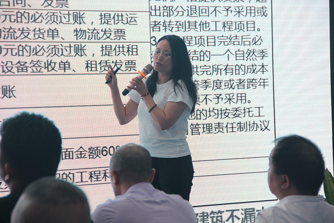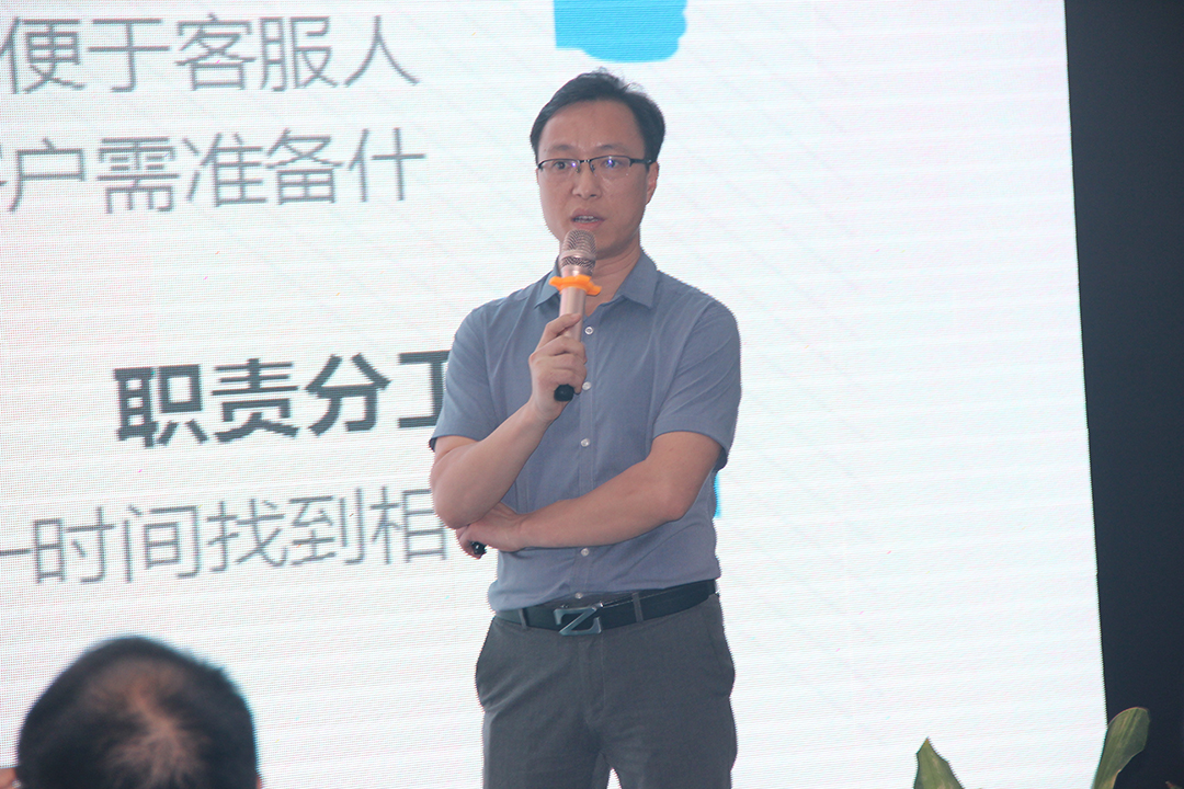 工裝渠道客戶服務(wù)中心林經(jīng)理分享了"改善服務(wù)不平,全國服務(wù)客戶",林經(jīng)理從訂單、庫存、下單、物流、票據(jù)、團(tuán)隊職責(zé)等六個方面詳細(xì)分析了工裝客服服務(wù)的內(nèi)容,并承諾后期團(tuán)隊成員將在快速響應(yīng)、服務(wù)態(tài)度、責(zé)任和客戶體驗等方面進(jìn)行改進(jìn),并就青龍工裝產(chǎn)品銷量排行進(jìn)行了簡單的分析,最后由客戶服務(wù)中心張主管就稅費進(jìn)行了講解。