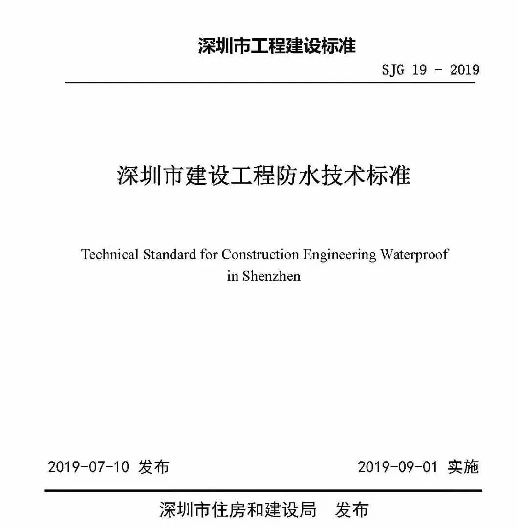 7月初,深圳市住房和建設(shè)局正式發(fā)布《深圳市建設(shè)工程防水技術(shù)標(biāo)準(zhǔn)》SJG19-2019。