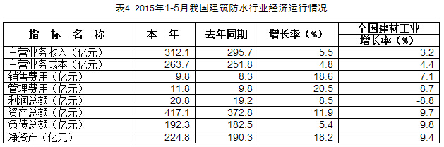 2015年5月我國防水行業(yè)經(jīng)濟(jì)數(shù)據(jù)分析