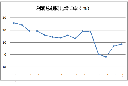 圖1 2014年至今行業(yè)利潤總額同比增長率變化情況