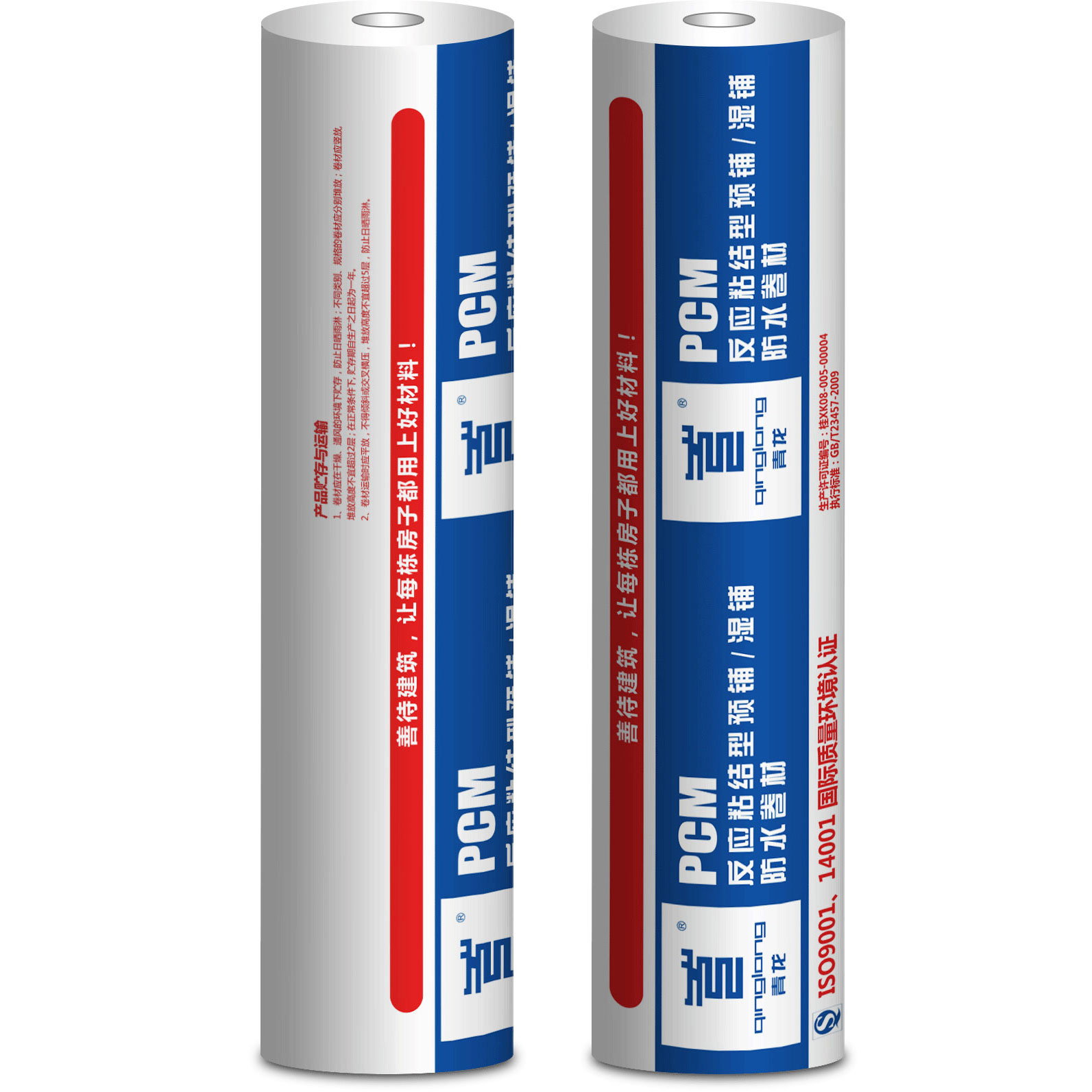 PCM反應(yīng)粘結(jié)型高分子預(yù)鋪防水卷材采用了共聚物樹脂類高分子(HDPE、LDPE、EVA、PVC、ECB、TPO)等均質(zhì)片材為主體防水層,在其上表面或上下表面涂一層具有蠕變功能得橡膠瀝青自粘材料再覆以硅油防粘隔離膜制成的高分子自粘防水卷材,可以根據(jù)需要在高分子片材上復(fù)合織物加強組成高分子防水卷材。